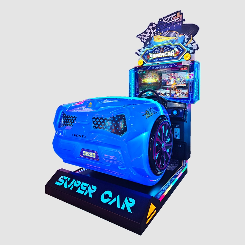 Pro-style steering wheel (with force feedback) and pedals let you nail drifts and overtakes, while multiplayer modes crank up the competition. Compact enough for arcades or malls, it’s a hit for speed lovers craving immersive, heart-pounding fun.
